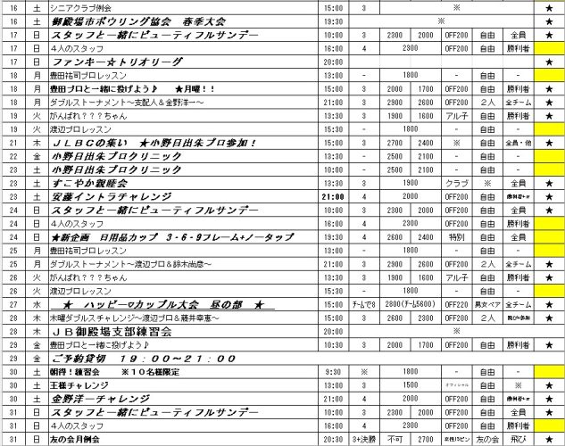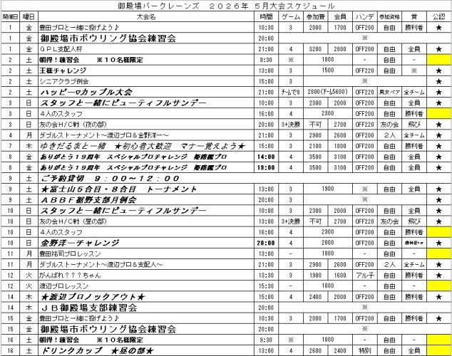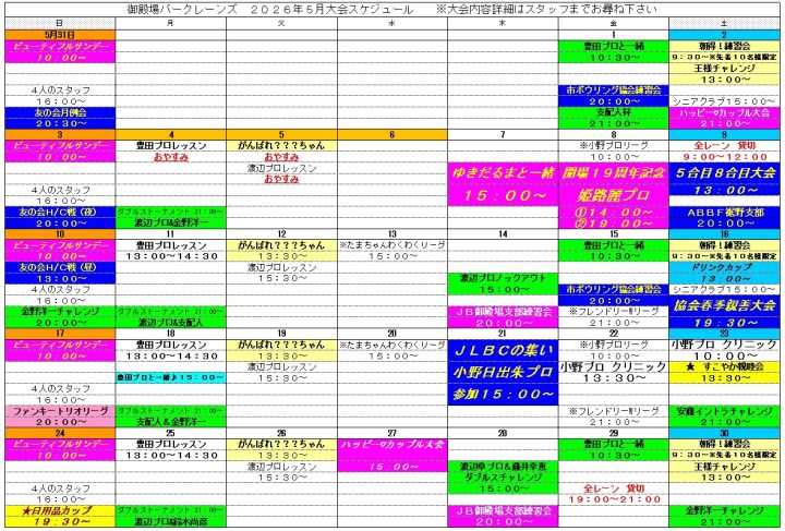 5月の大会スケジュールです